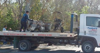El impacto fue devastador: las láminas del automóvil se deformaron y la mujer que iba como copiloto perdió la vida al ser decapitada. El conductor del Jetta fue proyectado fuera del vehículo y quedó atrapado debajo del mismo.