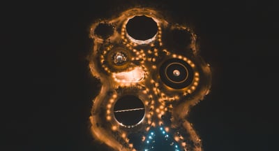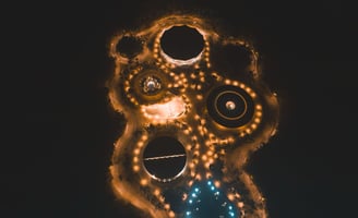 Vista aérea y nocturna del recinto, Foto: Elías Prado
